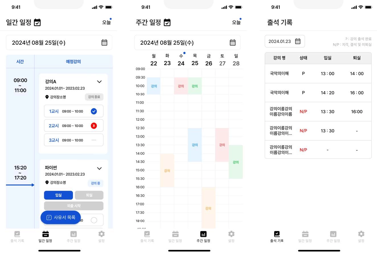학생에게는 간단한 출결 기능을 제공하고,