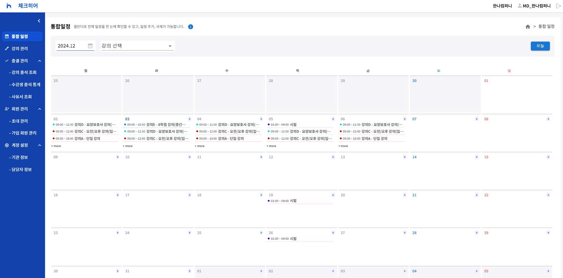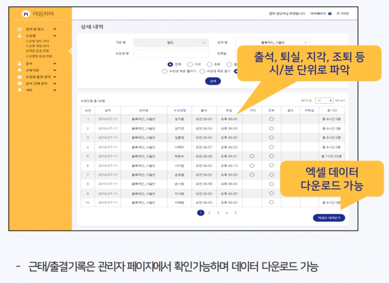 고객사에게는 출석표와 수정 및 통계 기능 등을 어드민으로 제공한다.