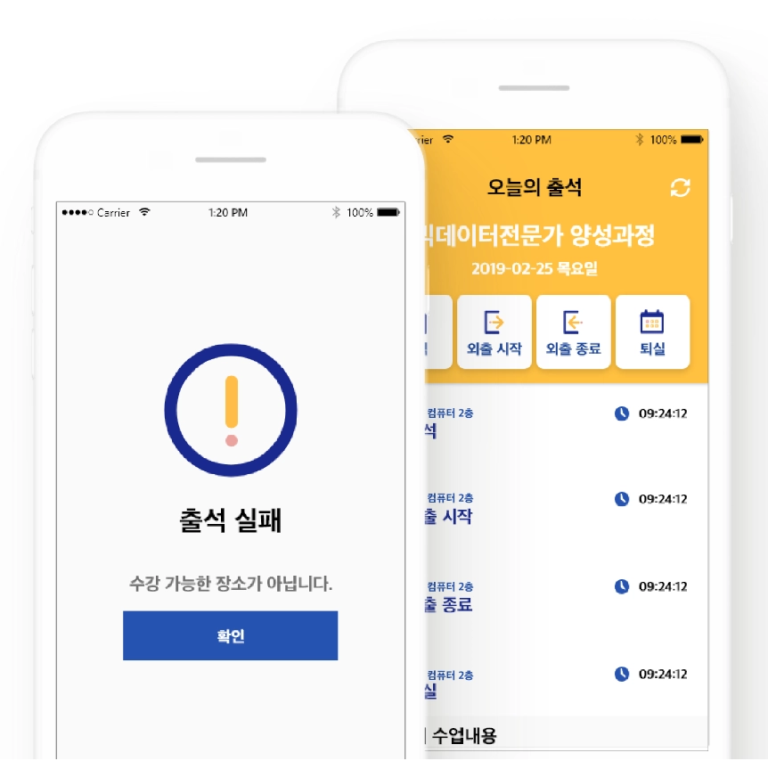 스마트폰을 이용한 수강생 출결 관리 서비스.
