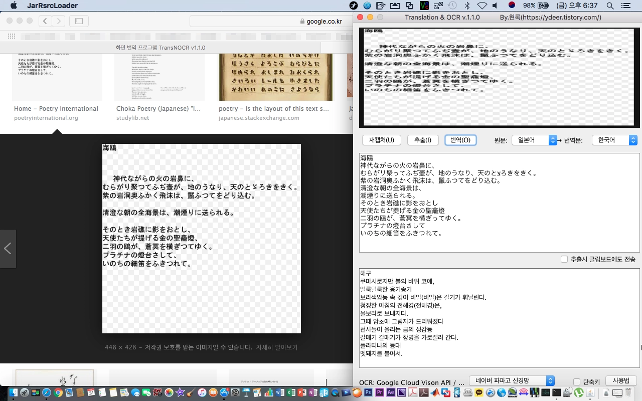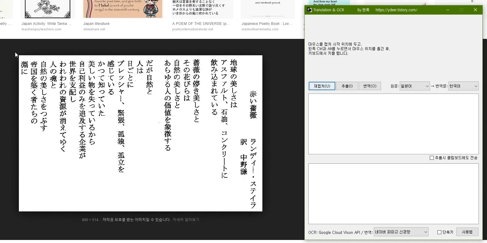 화면의 영역을 지정하여 문자 추출(OCR) 및 번역.